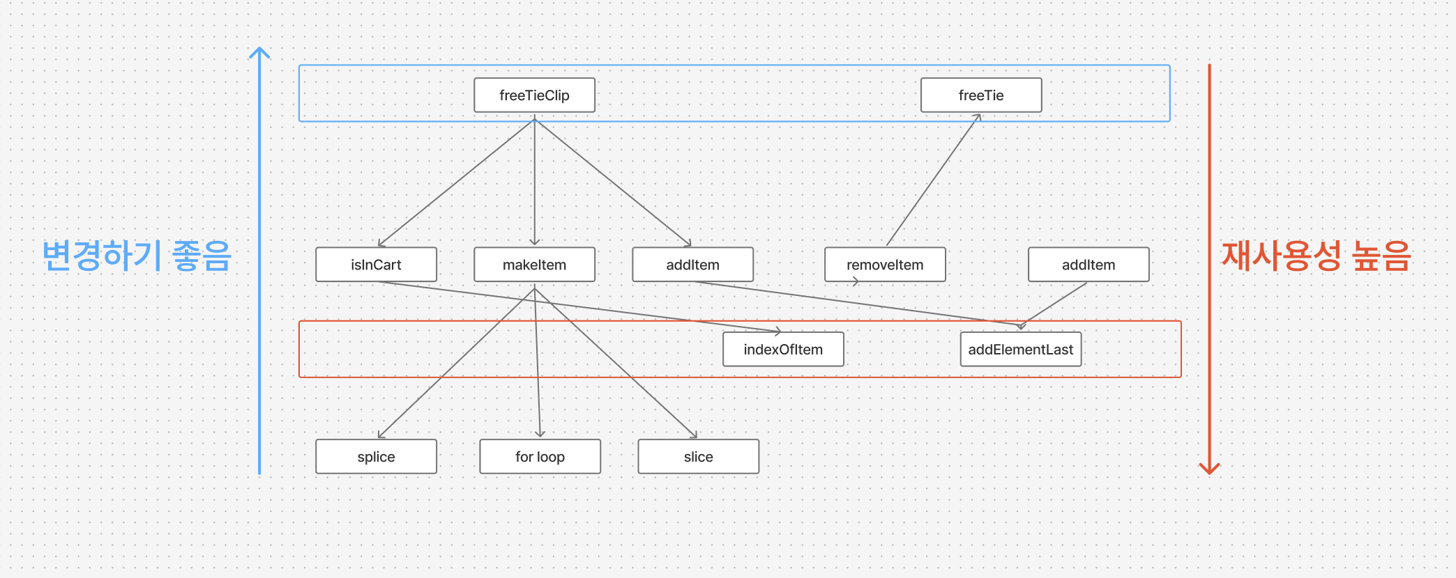위로 연결된 것이 적은 함수가 바꾸기가 좋다. 왜냐하면 맨 위의 freeTie, freeTieClip 함수는 위에 연결된 함수가 없기 때문이다.